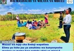 Waatalam wa lishe wakiwa katika kata ya Tumati kijijicha Endoji wameendelea kutoa elimu ya ya lishe juu ya umuhimu wa kunyonyesha maziwa ya mama kwa watoto chini ya miezi 6, pamoja na elimu k...