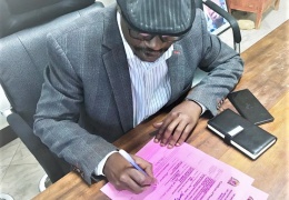 kutoka kushoto ni Kiongozi toka DIT,Mwenyekiti wa Halmashauri, Mkurugenzi Mtendaji wa Halmashauri, na Kiongozi wa Mzinga wakionesha Hati ya Makabidhiano