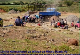 wananchi wakipakia kokoto za ujenzi wa josho katika lori la halmashauri mara baada ya kufanyiwa ukarabati na kuanza kutoa huduma mbalimbali za halmshauri...
