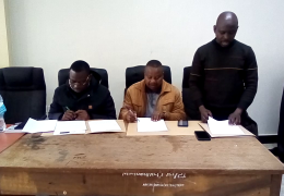 Kutoka Kushoto ni Mkurugenzi Mtendaji (W) Halmashauri ya Wilaya ya Mbulu Ndg. Abubakar A. Kuuli, Katibu wa Afya Wilaya ya Mbulu na Mwisho ni Afisa Lishe (W) Ndg. Ally Fupi .