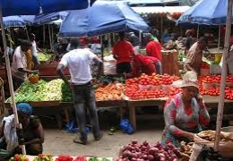 AFISA KILIMO WA WILAYA BW. MANAELI AKIWA  KATIKA SOKO LA MBOGAMBOGA  DONGOBESH AKIFUATILIA KWA KARIBU UTEKELEZAJI WA MRADI HUO.