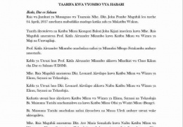 Serikali ya Jamhuri ya Muungano wa Tanzania imeatngaza ratiba kamili ya Mbio za mwenge kitaifa zitakazoanza tarehe 02/04/2017-14/10/2017...